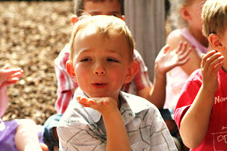 After party food the class put on a concert for all the Mum's, Dad's and grandparents. They sang songs and played instruments. Jarred was just loving it.